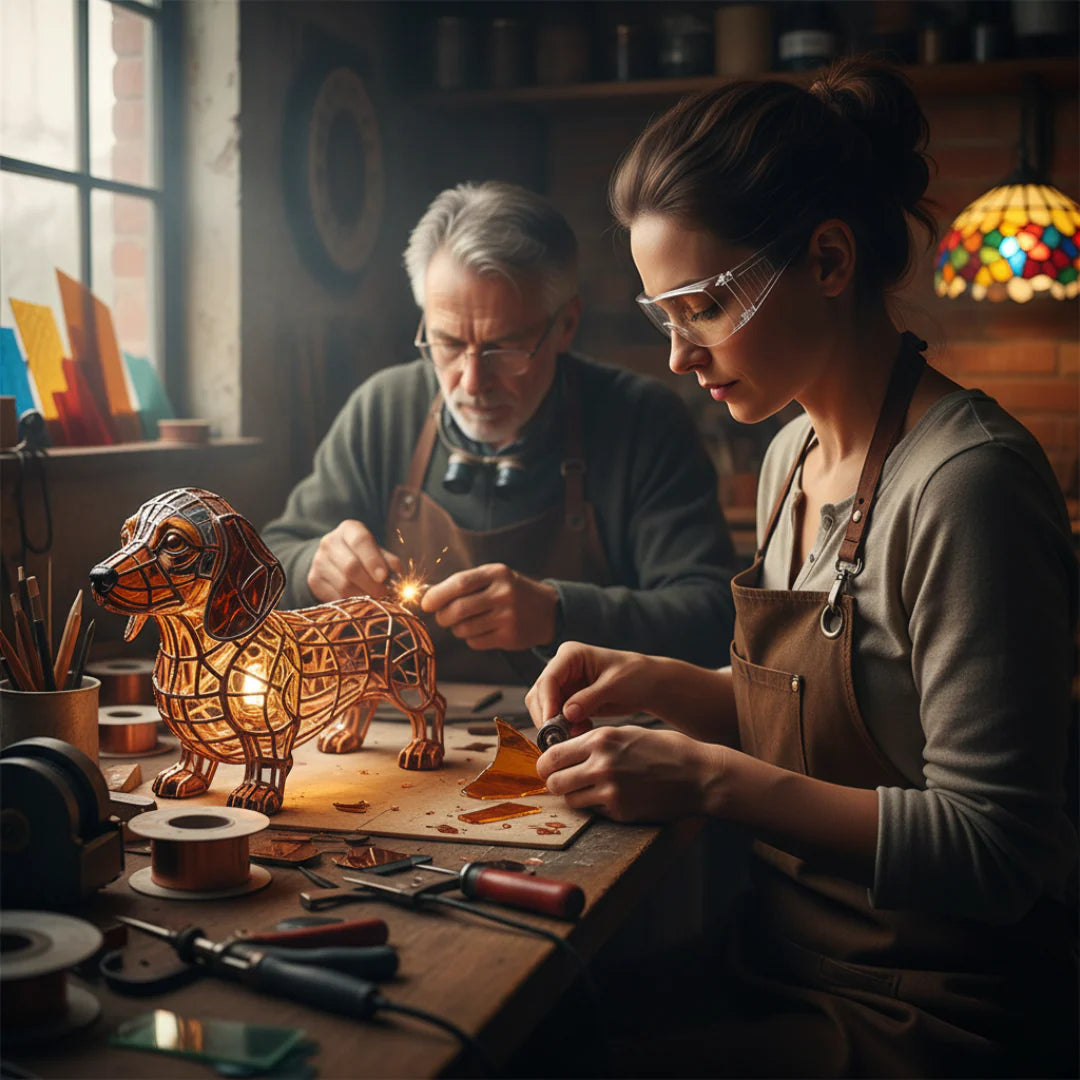 Vyrobené z kvalitného vitrážového skla a tvarované ručne, naše lampy prinášajú do vášho domova charakter a žiaru nadčasového umenia – bez potreby galérie či vstupenky.
